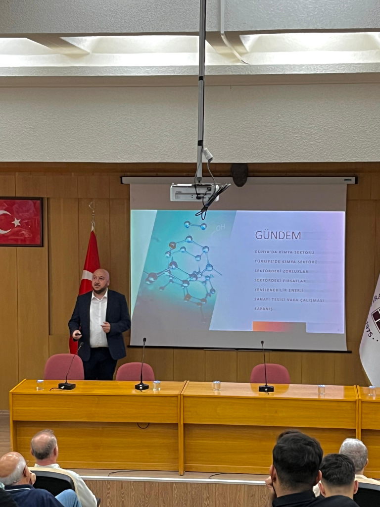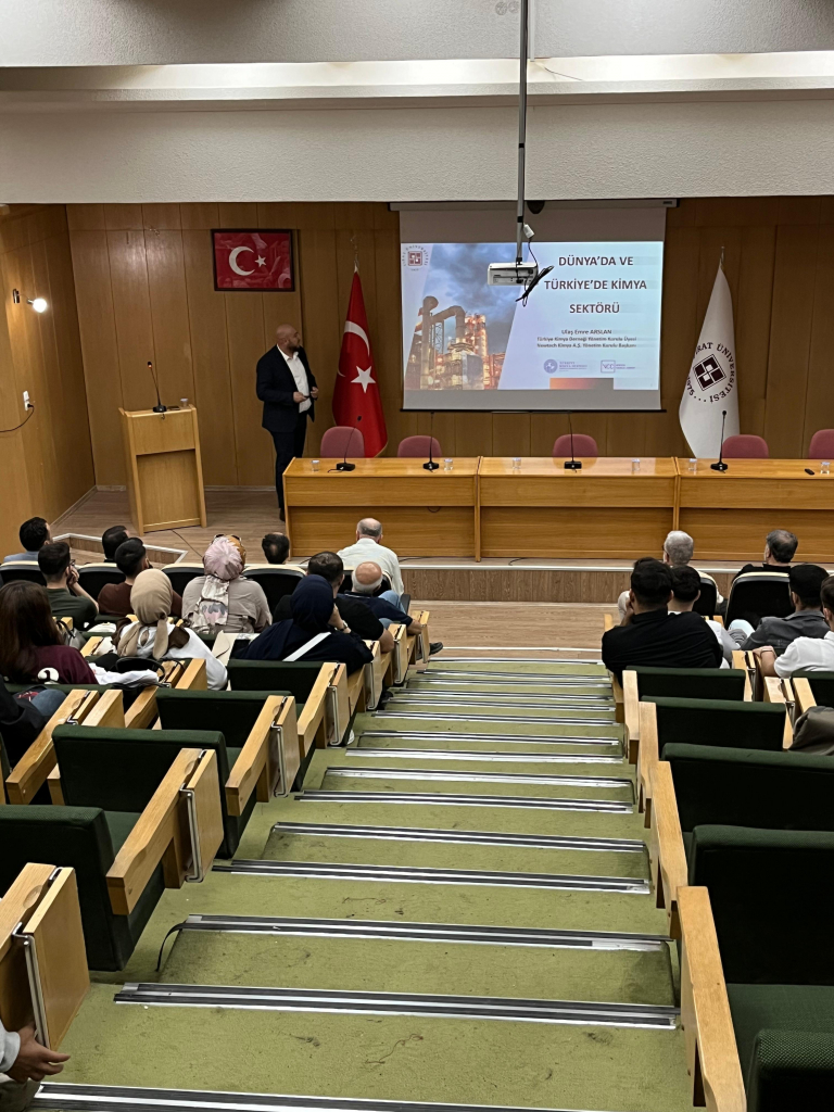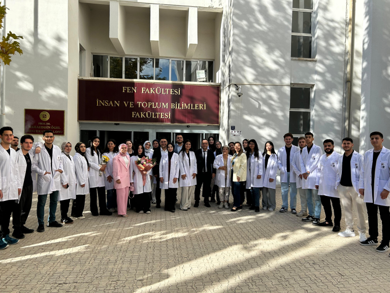 Fakültemiz oryantasyonprogramı kapsamında Kimya Bölümü olarak oryantasyon ve önlük giydirme töreni, öğretim üyelerinin ve öğrenvilerin geniş katılımı ile Prof.Dr. Bahaddin Öğel Konferans Salonu'nda gerçekleştirildi. Toplantıda öğrencilerimizle iş hayatı hakkında tecrübelerini paylaşan Türkiye Kimya Derneği Yönetim Kutulu Üyesi ve Newtech Chemical Company CEO'su Ulaş Emre Arslan'a plaket takdim edildi.